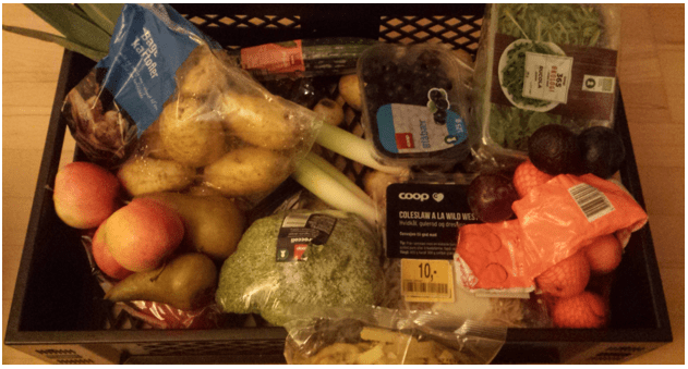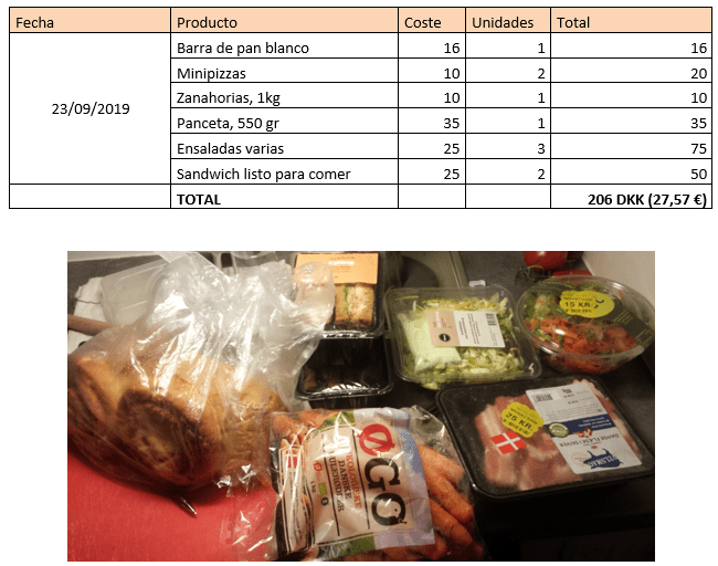Volviendo a la vivencia personal, hacer esto me ha dado una experiencia, de primera mano, de este grave problema. Mantengo una dieta equilibrada, y también he notado un ahorro económico notable. Aproximadamente, he dejado de gastarme 910 € (6.800 DKK), entre los meses de septiembre y enero. A continuación, muestro unas fotografías y tablas con algunas de mis colectas: