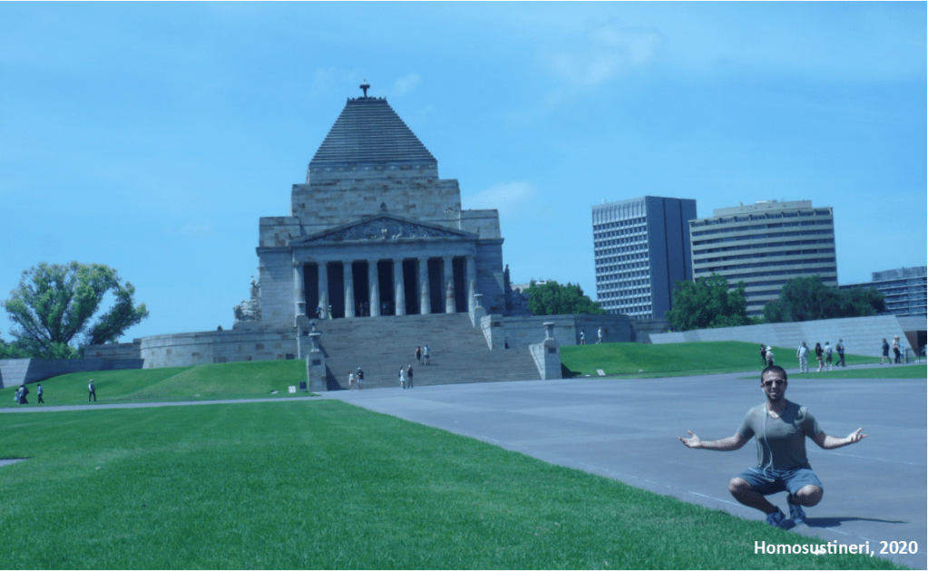 Junto a los jardines se encuentra el Santuario de la Memoria (Shrine of Remembrance), un sobrio y grandioso monumento erigido para honrar la memoria de los soldados australianos y neozelandeses caídos durante las Guerras Mundiales. Dentro de lo emocionante de su visita, tanto la vista panorámica desde su parte superior, como la piedra de la Memoria, situada en su interior, son espectaculares. Destaca el hecho que este santuario se diseñó de forma que un rayo de sol iluminara la palabra “Love” sobre esta piedra, cada 11 de noviembre a las 11 de la mañana, coincidiendo con el momento de firma del armisticio en 1918. El museo, una delicia para los aficionados a la historia militar.