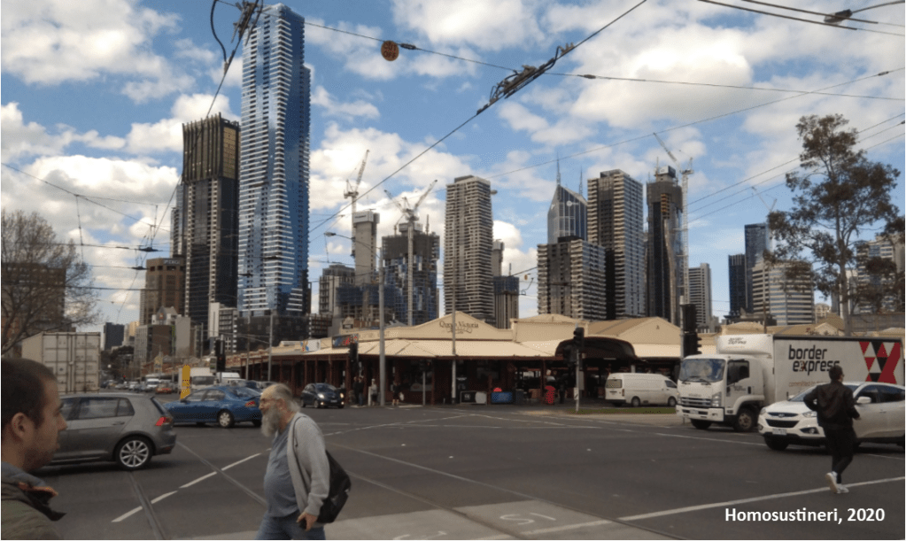 La primera parada podemos hacerla en el Queen Victoria Market, un pelín al Norte del CBD. En este colorido mercado podemos encontrar de todo: fruta, verdura, ropa, bebida, productos de artesanía, comida para llevar, juguetes, etcétera. Es uno de los pocos sitios en Melbourne en los que se puede encontrar, en la parte de alimentación, carne de cocodrilo de Queensland o de canguro, para los más curiosos y atrevidos. Es una agradable mezcla de colores, olores y acentos que tan bien representa parte de la actual Australia: hay puestos regentados por aborígenes, hispanos, italianos, chipriotas o asiáticos, entre otros. En ocasiones (en 2016 era los miércoles por la tarde), el mercado de transforma en un evento de gastronomía con numerosos puestos (streetfood market). Definitivamente merece la pena pasar un rato por aquí.