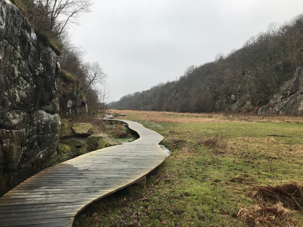 Ekkodalen o ‘El Valle de los ecos’, ubicado en el bosque de Almindingen. Este valle es consecuencia de una rotura tectónica que se prolonga a lo largo de 12 km. Este panorama ha creado unas impresionantes paredes de roca vertical, las más altas llegando a 20 metros junto a la entrada principal. Muy cerca de ella, nos vamos a tomar con la cascada Gedebæks, desde donde podemos subir por las escaleras al bosque de robles en la parte superior, gozar de las vistas o descansar sobre el cómodo musgo. ¡Ah, no olvidéis probar el eco en la zona de rocas verticales! Hvad drikker Møller?! Øller!