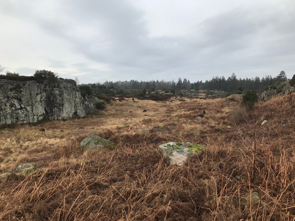 Hammerknuden, en el extremo más al norte de la isla, justo sobre las icónicas ruinas de Hammershus. Esta zona natural incluye mar, rocas, lagos y cerros y la podemos transitar por varias de sus vías coloradas. Esta área está limitada por el lago Hammersø (el mayor de la isla), y aquí predominan las formaciones rocosas y sus formas están fuerte influenciadas por la actividad humana. Los restos de la minería de granito son evidentes, incluyendo el pintoresco lago Opalsøen, otrora un sitio de excavación que nos da una idea de la magnitud de esta industria que se prolongó hasta principios de los 70. Las ruinas de la Capilla de Salomón (ca. 1300) junto al mar merecen una visita, dichosa la soledad de aquellos que la frecuentaban cuando estaba en su mejor forma.