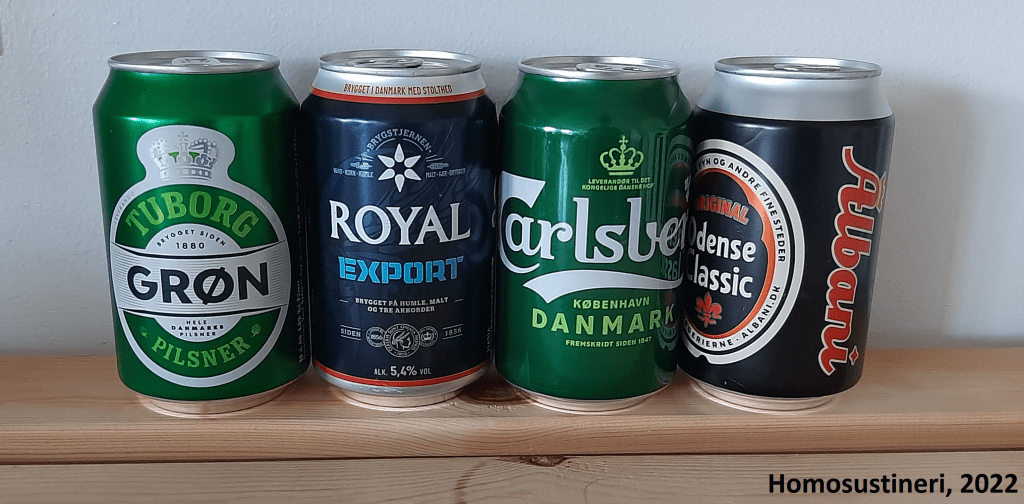 Todas estas marcas tienen como principal reclamo la pilsner, el tipo de cerveza que domina en el panorama nacional. Tuborg, fundada en 1873, da la sensación de ser algo más popular que la Carlsberg (1847) en lo que a ventas nacionales se refiere. Desde 1970, eso sí, Tuborg es propiedad del grupo Carlsberg. Ambas patrocinan eventos deportivos, de ocio, etcétera, y son las que la mayoría de los daneses te llevará a casa si organizas una comida o cena. Las beben desde grupos de estudiantes hasta la actual primera ministra. Existen también otras cervezas nacionales, pero algo menores en cuanto a marketing, la Albani (fundada en 1859 y típica en la isla de Fionia) y la Royal (del grupo Royal Unibrew, segundo tras Carlsberg y al que desde 2000 pertenece la Albani, entre otras). Estas marcas agrupan decenas de tipos de cervezas, pero, si me dan a elegir entre sus 4 más básicas, me quedo con el sabor de la Albani, que tiene algo más de cuerpo que las demás.