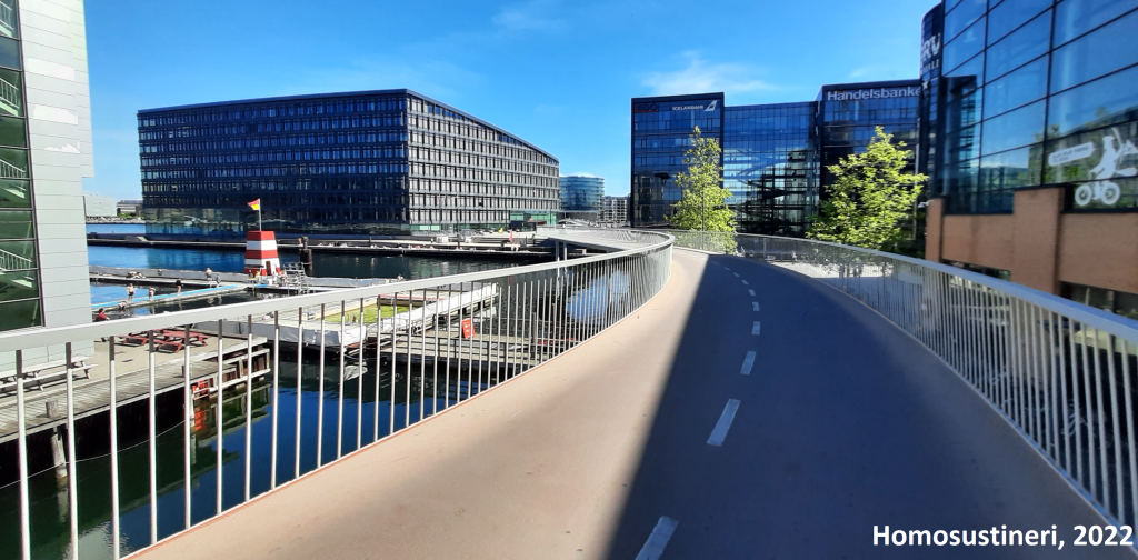 Dinamarca es un país muy plano, lo que hace que montar en bicicleta no tenga la dificultad física que existe con una orografía variable. Es muy normal montar en bicicleta, no solo para hacer ejercicio, sino para realizar sus tareas diarias: la población coge la bici para ir a trabajar, a hacer la compra, para quedar en grupos, etcétera. En cierto modo, puede interpretarse como representación de la homogeneidad de esta sociedad: todo el mundo, jóvenes y mayores, pueden tener acceso a una.