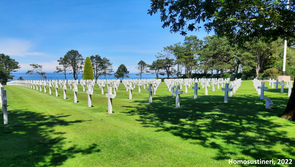 Más allá del turismo de guerra, que tiene algo, abominable y crudo, atrayente para muchos, quisiera destacar la parte humana (o mejor dicho, inhumana) de la guerra. Pensé en esto visitando los cementerios de las distintas tropas, ya que una oscura bruma silenció mi mente durante esos ratos. Los distintos cementerios, el alemán de Le Cambe, donde descansan cerca de 22.000 alemanes, el norteamericano de Colleville sur Mer, con 9.387 tumbas, o el de Bayeux, donde yacen casi 6.000 tropas de la Commonwealth (en su mayoría británicas), entre otros, están perfectamente cuidados y limpios al milímetro. Todos tienen monumentos y habitáculos destinados a la oración o memoria. Además de estos cementerios, existen otros por la zona, como otro alemán en Huisnes-sur-Mer, muy cercano a Mt. St. Michel, o el resto de los cementerios de la Commonwealth. En todos los cementerios de guerra en Normandía, hay más de 110.000 vidas cortadas de forma absurda (al menos, desde un punto de vista ético) y prematura.