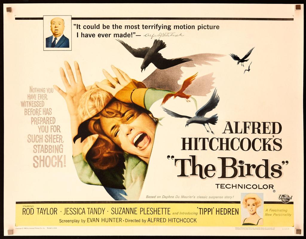 Los pájaros (The Birds, 1963) – Una de las obras más icónicas de Alfred Hitchcock, pese a que cuenta con varias. Los pájaros es un singular thriller que nos presenta una serie de inexplicables ataques de aves a personas, en un pueblo costero de California. El escenario, efectos de sonido, ritmo, excelente interpretación por parte de Tippi Hedren y la siniestra presencia de los pájaros, hará que los espectadores se agarren fuerte al asiento, almohada o pierna del/la acompañante bajo una continua sensación de calma tensa.