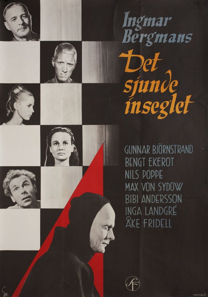 El Séptimo Sello (The Seventh Seal, 1957) – Clásico drama alegórico y una de las piezas clave del director sueco Ingmar Bergman. Max von Sidow da vida a Antonius Block, caballero recién llegado de combatir en las cruzadas durante una década a su Suecia natal (donde la Peste Negra campa a sus anchas), y mientras la transita establece una partida de ajedrez con la Muerte, que ha venido a llevárselo. La película plantea, a parte de la muerte, temas como el destino, la redención, la fe o la belleza del arte, entre otros.