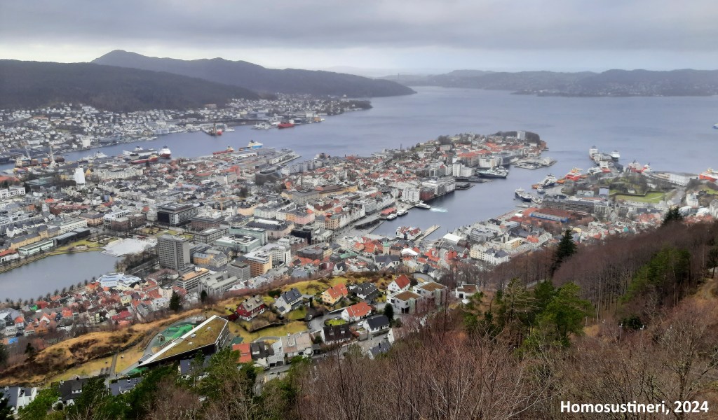 Subir en el funicular Fløibanen cuesta unos 15 € (viaje de ida y vuelta), y toma unos 10 minutos. Caminando puede costarnos entre 30-45 minutos sobre un camino asfaltado, donde nos podemos entretener encontrándonos algunos jardines, u ovejas y cabras pastando libremente. Si visitamos Bergen en invierno, bajar por la pista helada en trineo es muy divertido. Una vez arriba, el mirador ofrece una vista panorámica de toda la ciudad y sus fiordos, y la zona está acondicionada con parques infantiles, una cafetería, un restaurante y caminos hacia distintas rutas de senderismo.